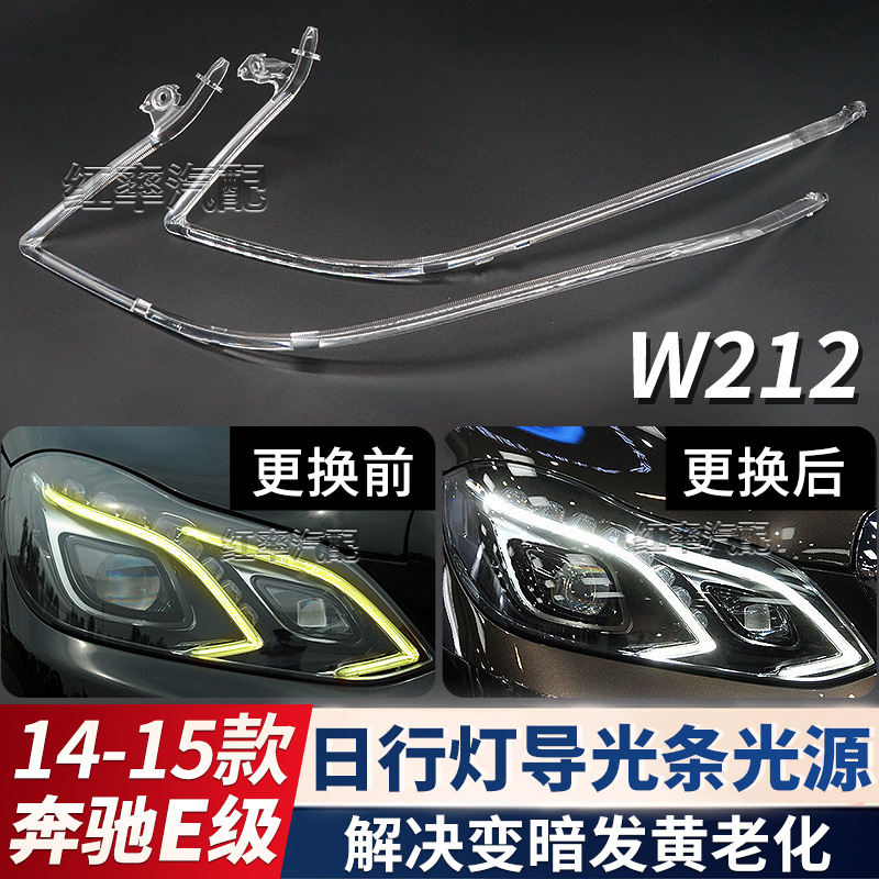 Cocok untuk 14-15 Mercedes-Benz E-Class Day-Day-Day-Day-Walking Light Light Strip Panduan Cahaya Pipa Sumber Cahaya Kuning