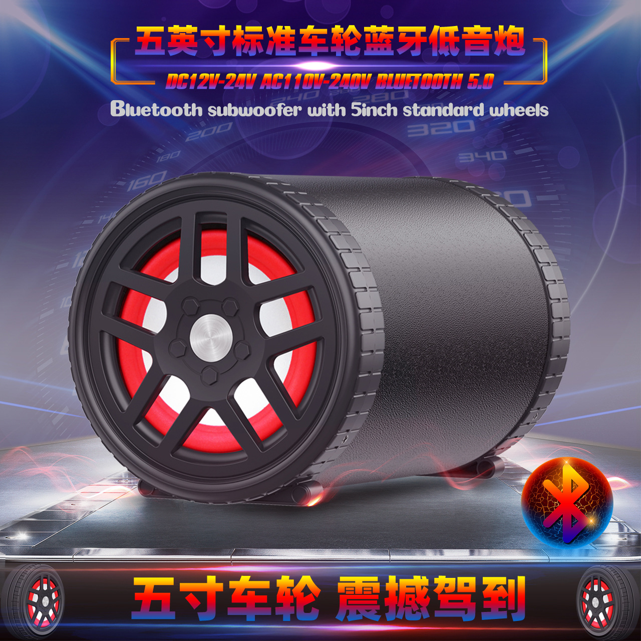 Speaker Mobil Bluetooth, 5 inci roda bulat 12V24V220 mobil rumah subwoofer Bluetooth tabung suara audio komputer empat musim