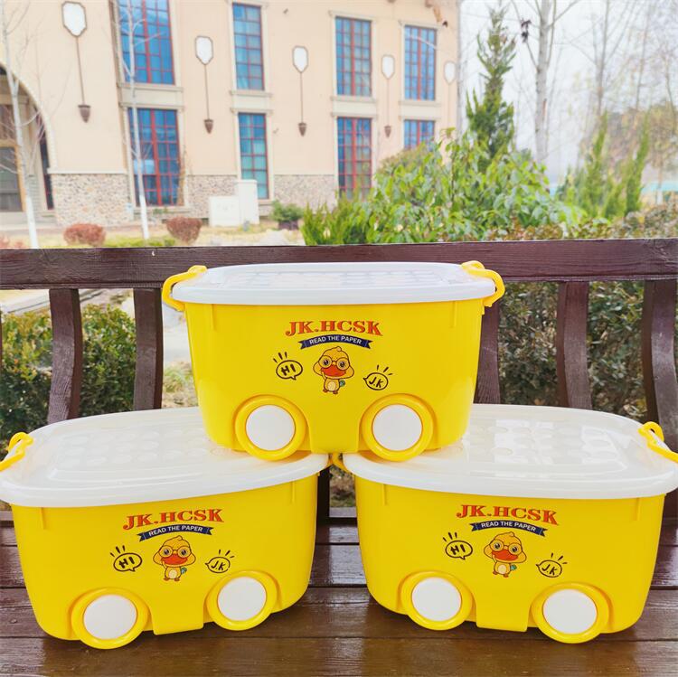 Kotak penyimpanan plastik bebek kuning kecil, kotak penyimpanan rumah tangga portabel dengan roda