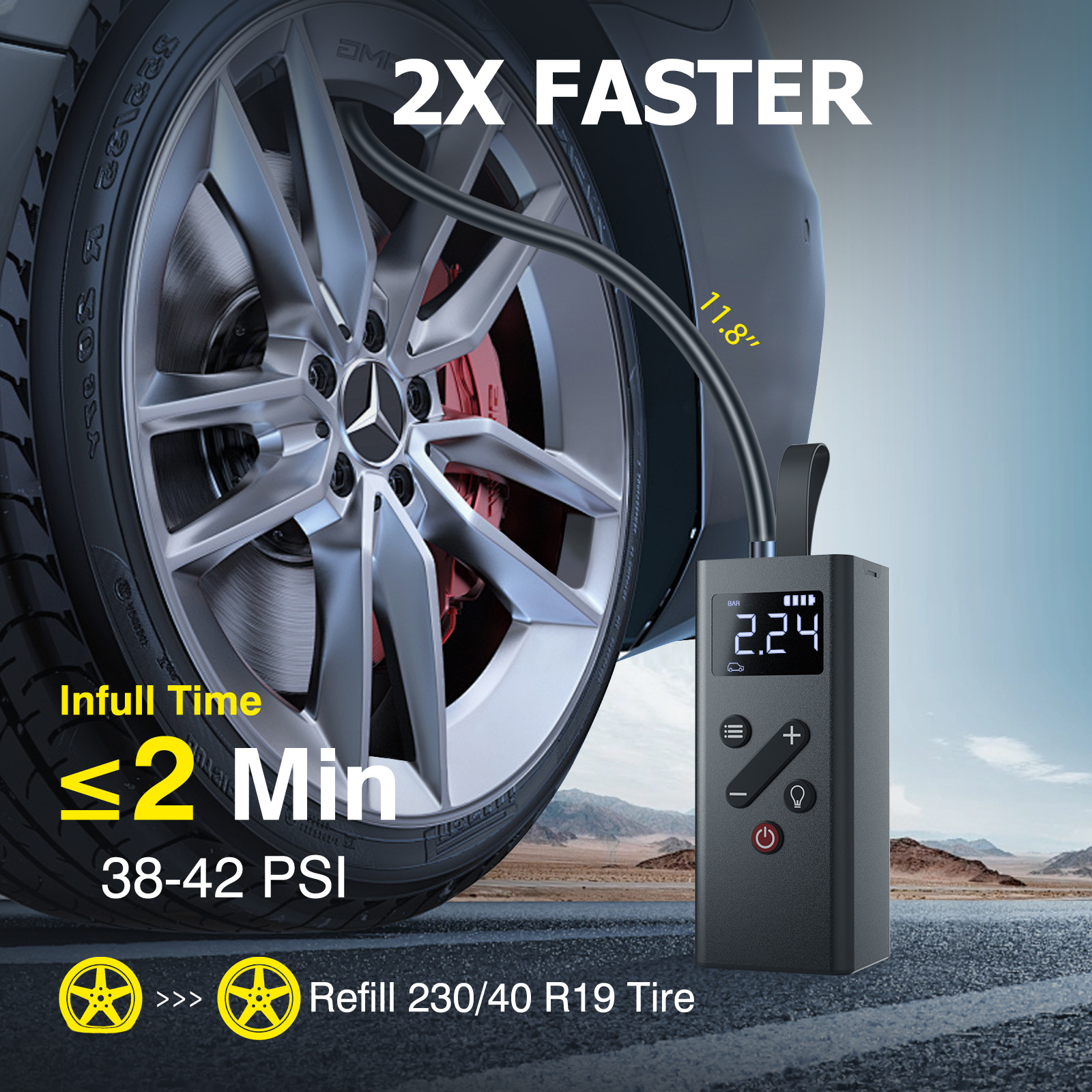 Pompa udara mini portabel, pompa udara mobil pintar tampilan digital lampu ban mobil