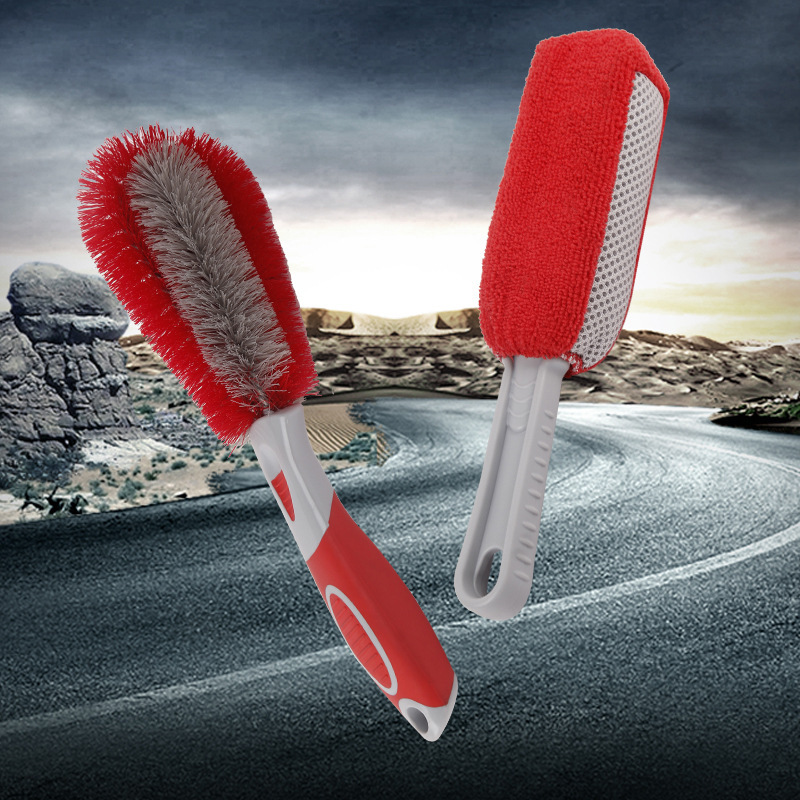 Setelan sikat pembersih hub roda, sikat pembersih lapisan anti selip, sikat ban cincin baja spons cuci mobil lintas batas e-commerce
