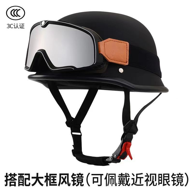 Helm setengah retro pria, helm sepeda motor penjelajah, mobil listrik, helm tentara lokomotif Jerman 3C