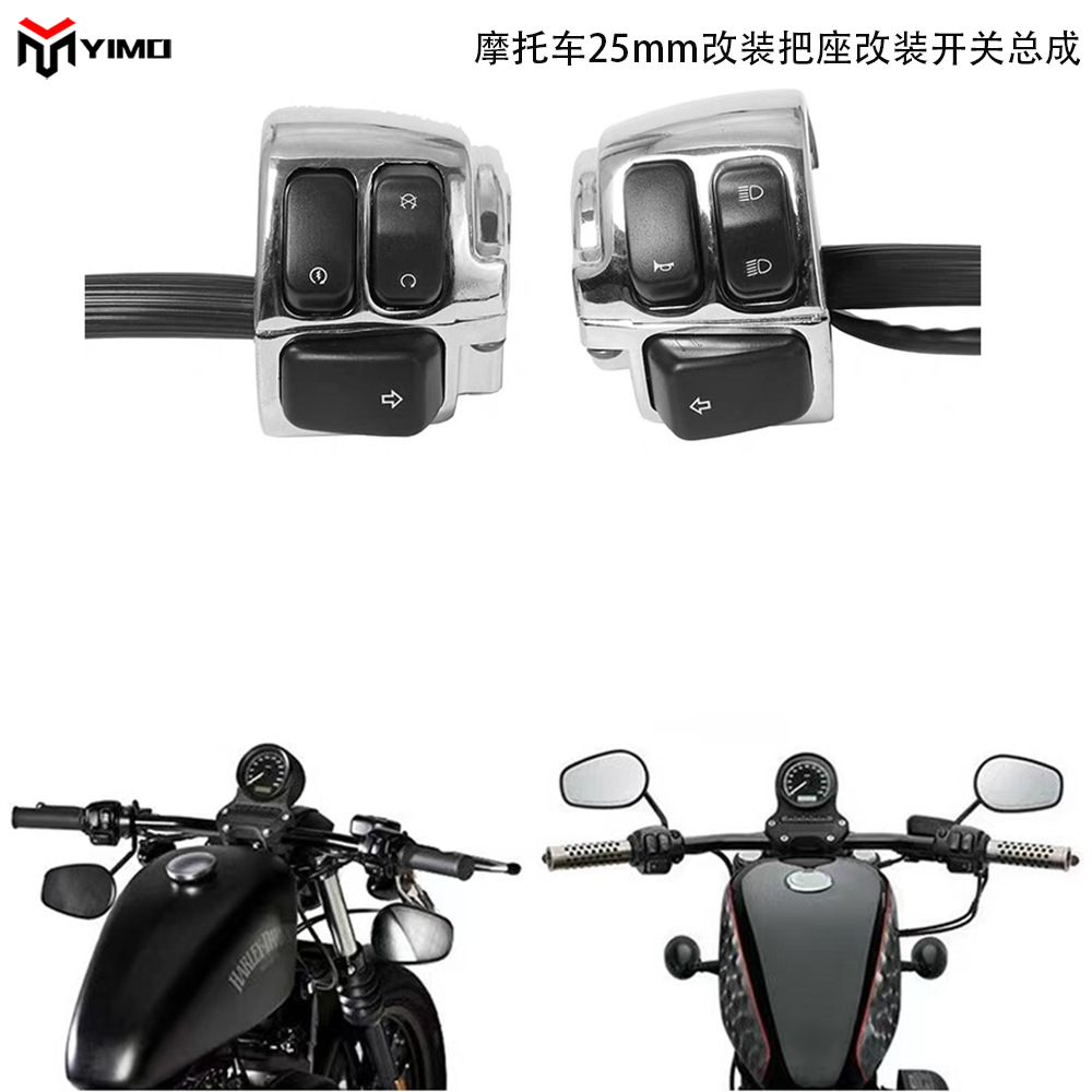 摩托车复古改装件哈雷太子25MM手把巡航大灯断电开关电镀把座总成