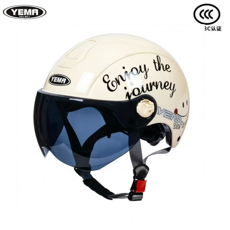 Helm mobil baterai listrik bersertifikat 3C, pria dan wanita musim dingin tahan dingin hangat high-end helm wajah tersenyum lucu setengah helm