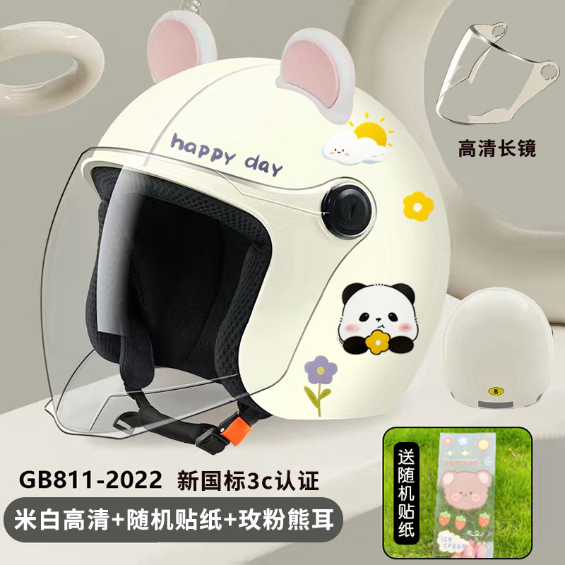 Helm mobil elektrik pria dan wanita, helm sepeda motor setengah musim dingin, helm mobil elektrik bersertifikasi 3C kelas standar nasional baru, hangat, warna solid, telinga beruang