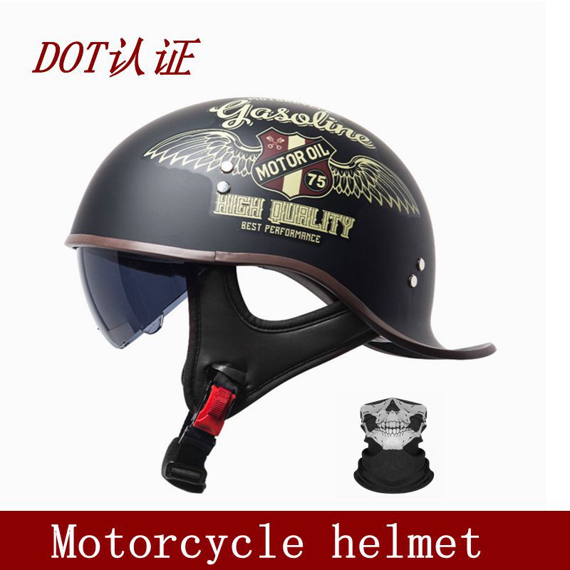 Helm sepeda motor retro, helm Harley, lensa gelembung, tiga tombol dengan braket atas dan bawah, cermin gelembung lipat
