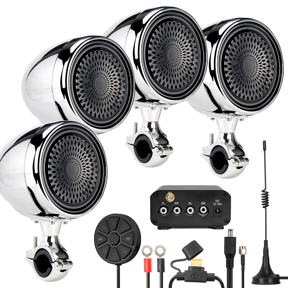 Audio sepeda motor, pemisah empat saluran dengan Bluetooth Guobin 650 subwoofer tahan air daya tinggi 12V