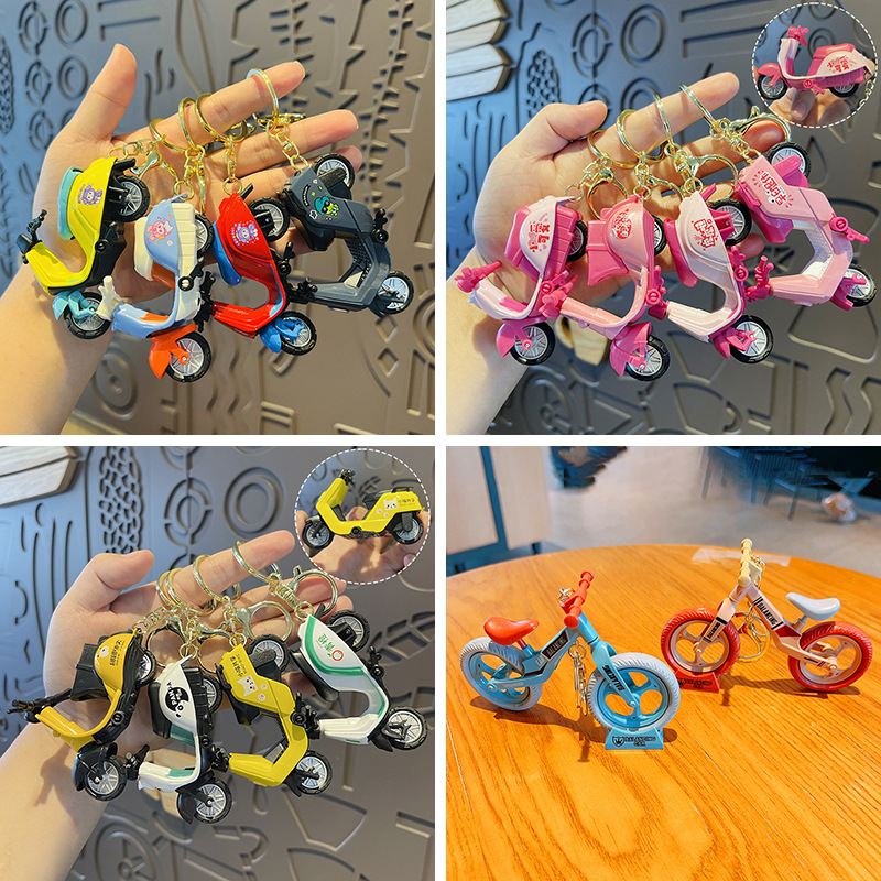 Internet selebriti kartun sepeda motor Harley listrik kecil donkey koleksi rebound mobil mainan mobil tas sekolah gantungan kunci grosir