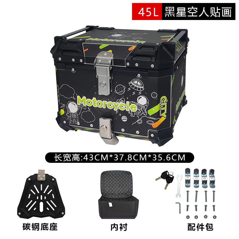 Kendaraan motor elektrik, bagasi paduan aluminium tahan air kendaraan belakang rilis cepat aluminium alloy bagasi 45L berbagai stiker