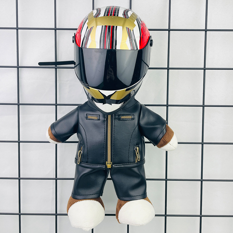 Boneka modis bermain tanpa tanda hitam, boneka sepeda motor beruang kulit, Dekorasi liontin sepeda motor, bagasi mobil, boneka helm Beruang