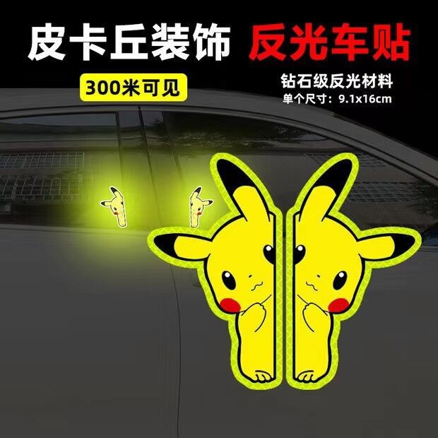 Pikachu stiker dekorasi mobil, stiker peringatan reflektif malam hari, stiker dekorasi sepeda motor elektrik bagasi belakang mobil lucu kartun