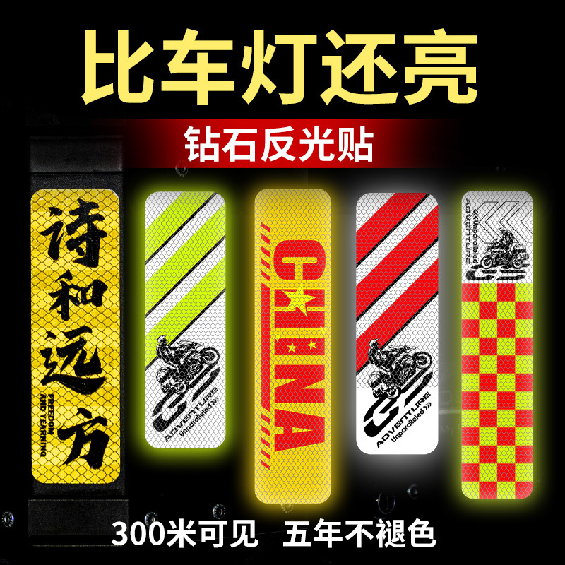 Stiker Reflektif Kotak Belakang Kotak Aluminium Sepeda Motor Stiker Samping Anti Air Kotak Mount Modifikasi Tiga Kotak Dekorasi Peringatan Stiker Strip