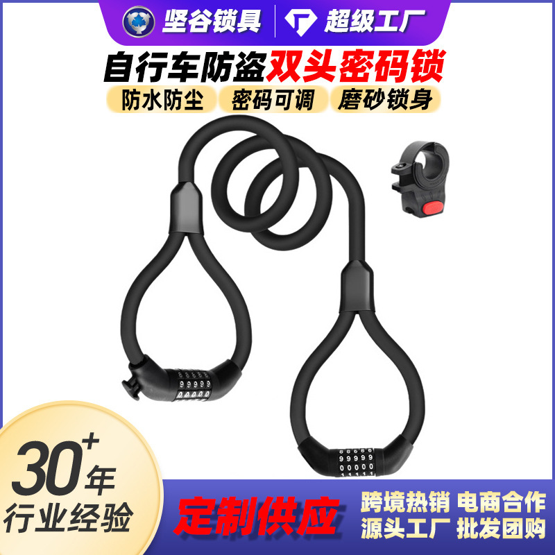Lintas Batas Matte Kepala Ganda Kunci Sepeda Kustom Anti-pencurian Portabel Kunci Sandi Sepeda Motor Skuter Listrik Kunci Kabel Baja