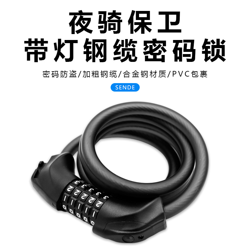 Sunde G05 kunci sepeda gunung, sepeda motor elektrik kunci anti-maling 5 digit kunci sandi dengan penglihatan malam lampu kunci kabel lintas batas