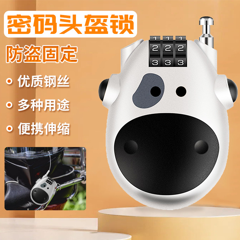 Kunci helm sepeda motor, kunci helm sepeda motor sapi kecepatan tinggi, rel bagasi kawat baja, snowboard, gembok anti hilang, kunci kata sandi dapat ditarik