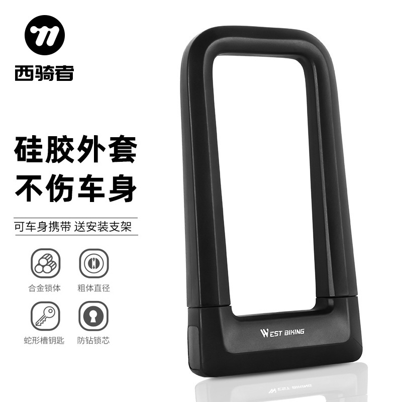 WEST BIKING kunci sepeda silikon berbentuk U, kunci sepeda paduan universal tahan air anti-tabrakan peralatan berkendara