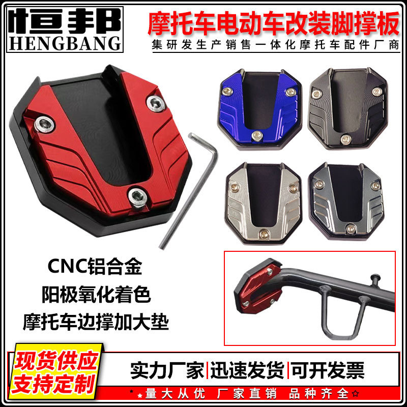 摩托车改装配件CNC铝合金脚撑板耐用加大辅助侧踢块脚撑防滑边
