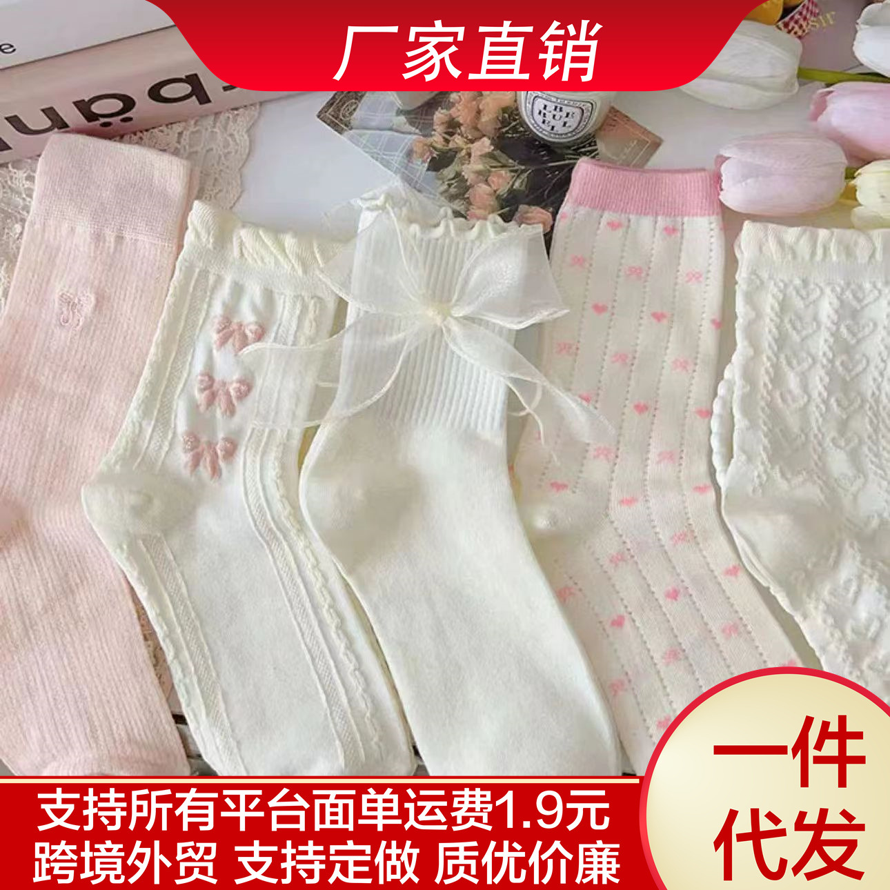 Kaus Kaki Sedang Pita Kupu-Kupu Musim Semi dan Musim Panas Kaus Kaki Tumpuk Model Tipis Gaya Balet Anak-anak Kaus Kaki Panjang Warna Putih Musim Panas Gaya Jepang Jk Gadis