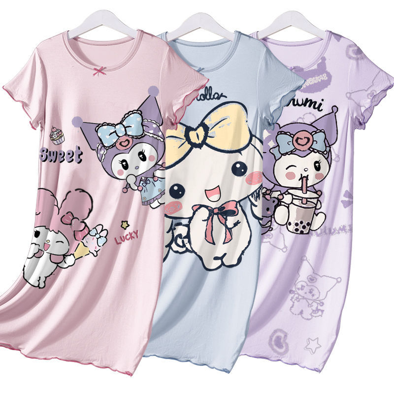 Piyama Anak-anak Gaun Tidur Anak Perempuan Model Tipis Sutra Es Model Baru Musim Panas Piyama Kartun Gaya Putri Pakaian Rumah Kasual Lucu