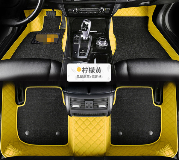 Tikar kaki mobil kuning Lemon alas kaki karakteristik kulit sekeliling besar lapisan ganda lapisan ganda plus karpet sutra