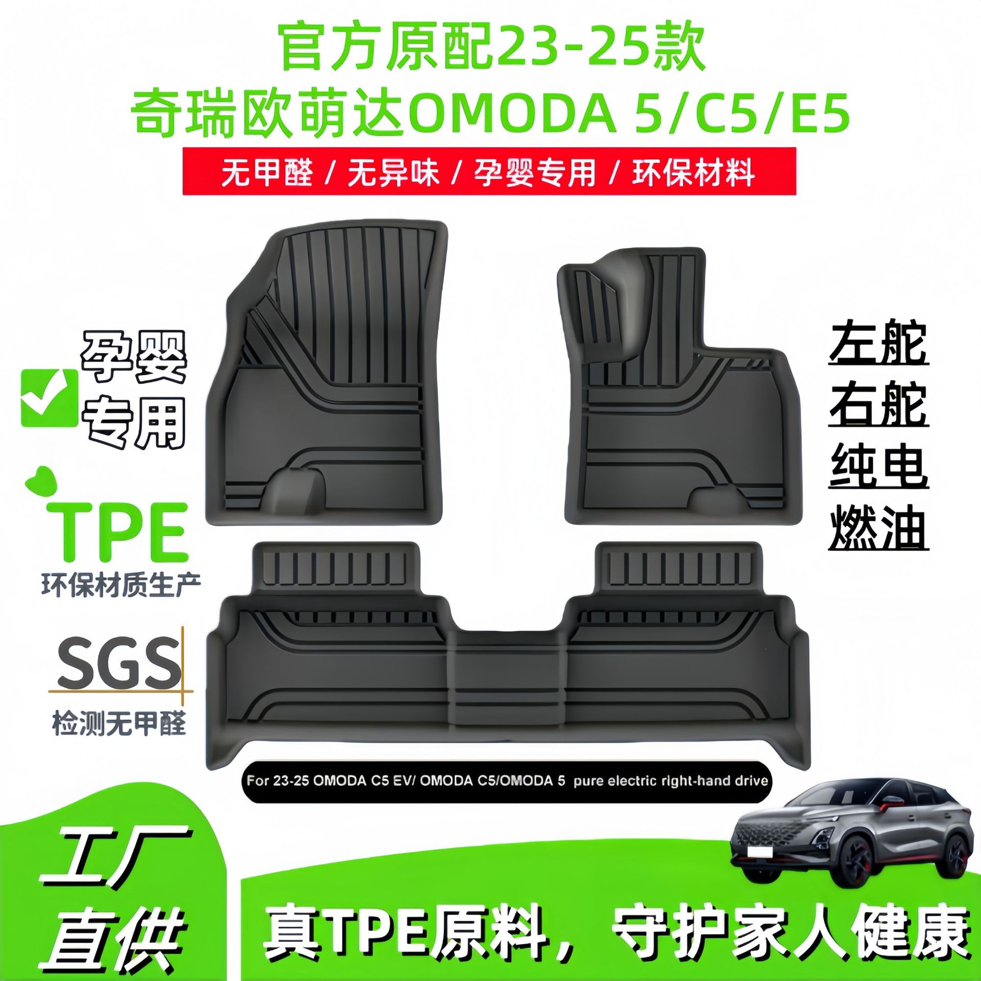适用于23-25款奇瑞欧萌达OMODA 5/C5/E5汽车脚垫TPE脚垫后备箱垫
