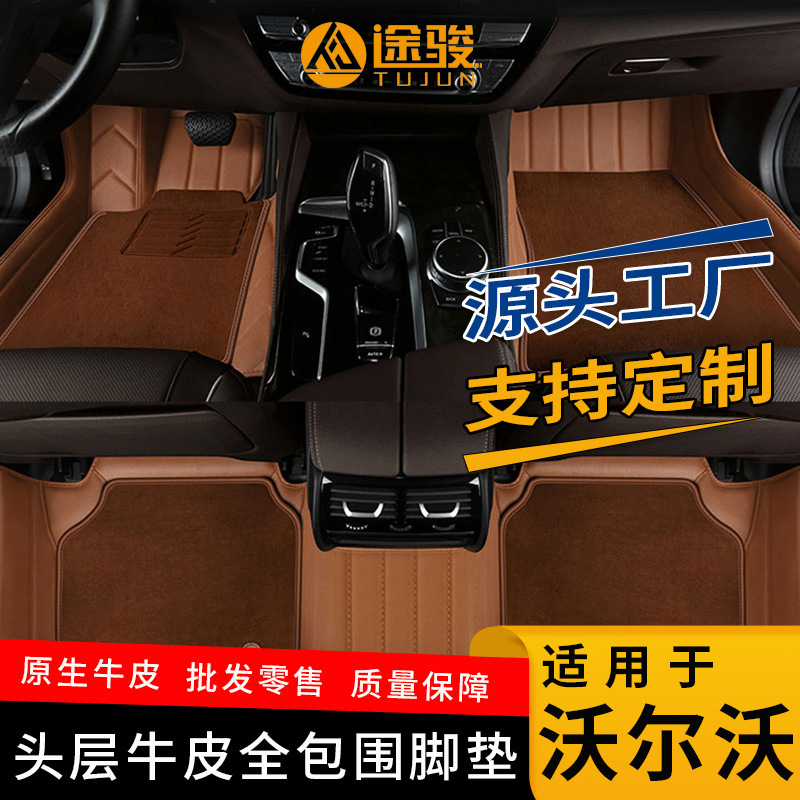 Lapisan pertama kulit sapi penutup penuh mobil tikar untuk Volvo XC40 XC60 XC90 S90 S60 S40