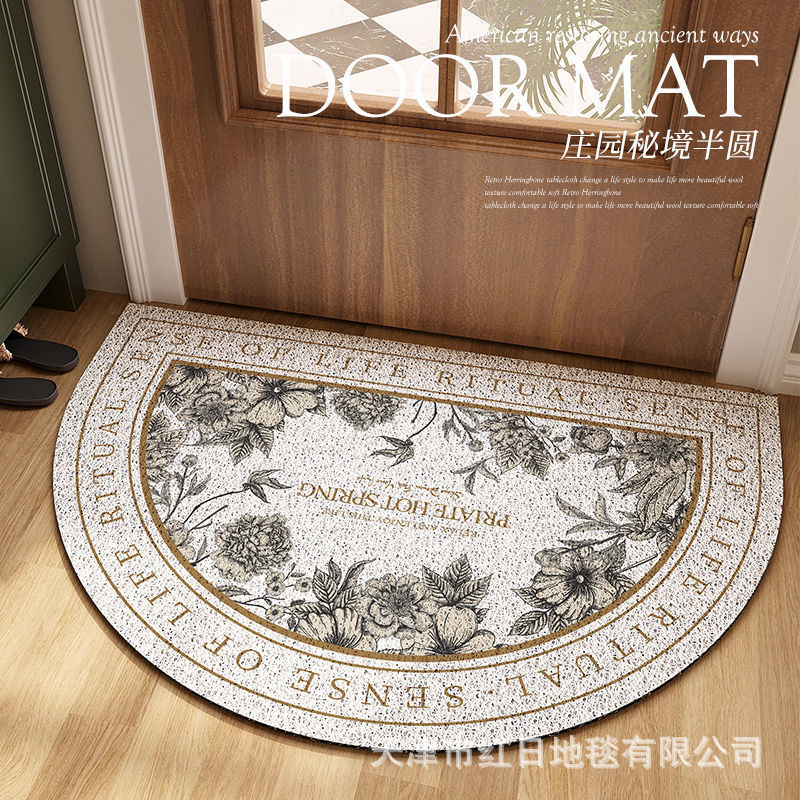 Keset lantai setengah lingkaran, keset pintu masuk motif bunga, cincin kawat PVC, keset anti debu, keset pintu rumah