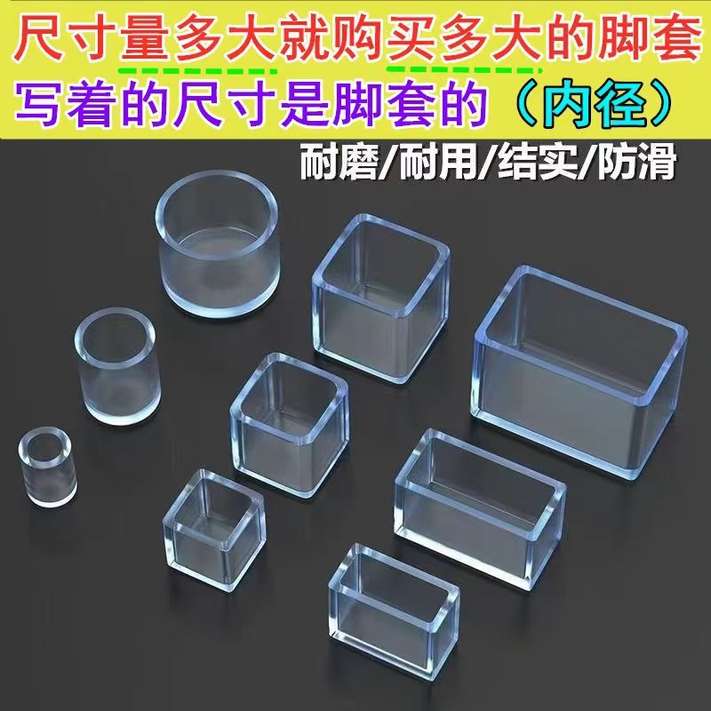 Sarung kaki kursi dan meja transparan kotak, penutup pelindung kaki kursi silikon tahan aus senyap