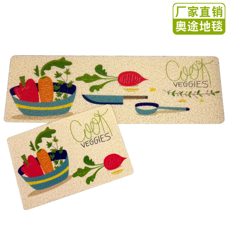 Promosi PVC cincin sutra dicetak karpet dapur anti-selip tikar dua bagian keset pintu kamar tidur tikar panjang