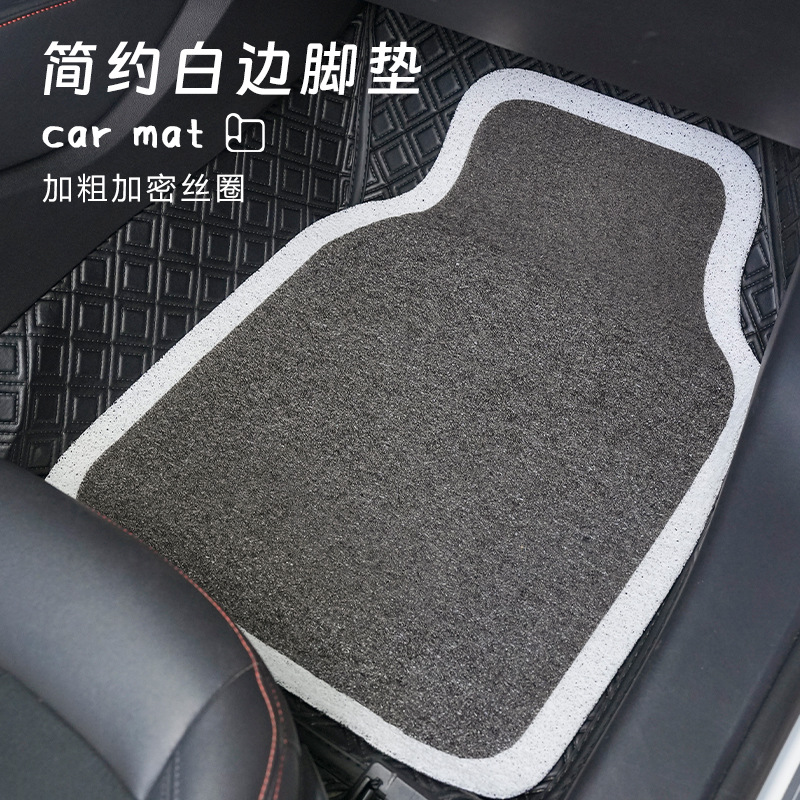 Tikar kaki mobil universal, sederhana hitam putih tepi kawat cincin satu potong anti-kotor dekorasi karpet alas kaki baris belakang