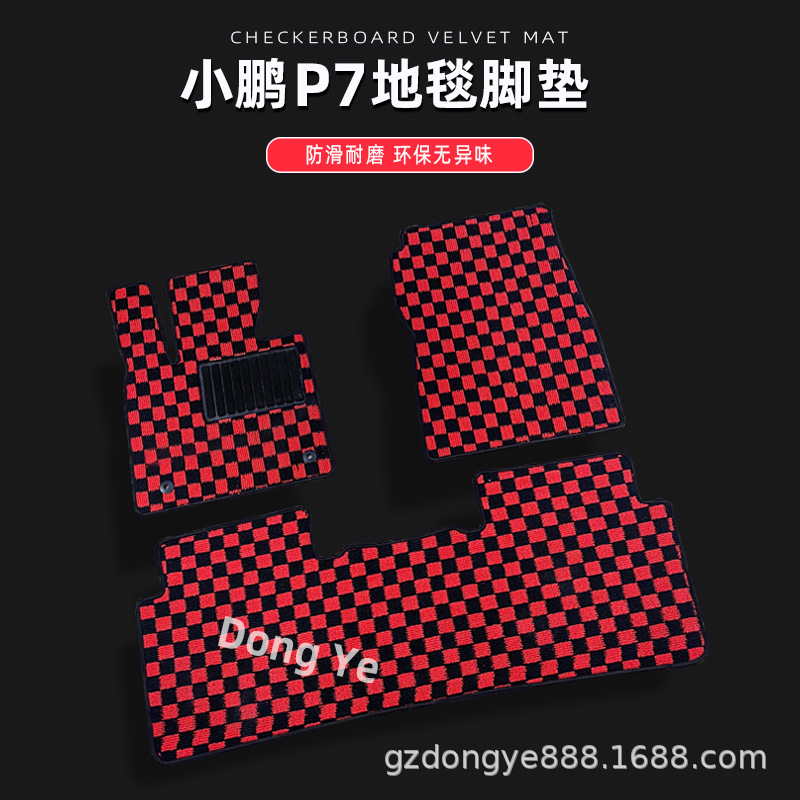 Cocok untuk Xiaopeng P7/G3i/P5/G6/G9/X9 alas kaki mobil kotak-kotak papan catur karpet datar lintas batas ekspor