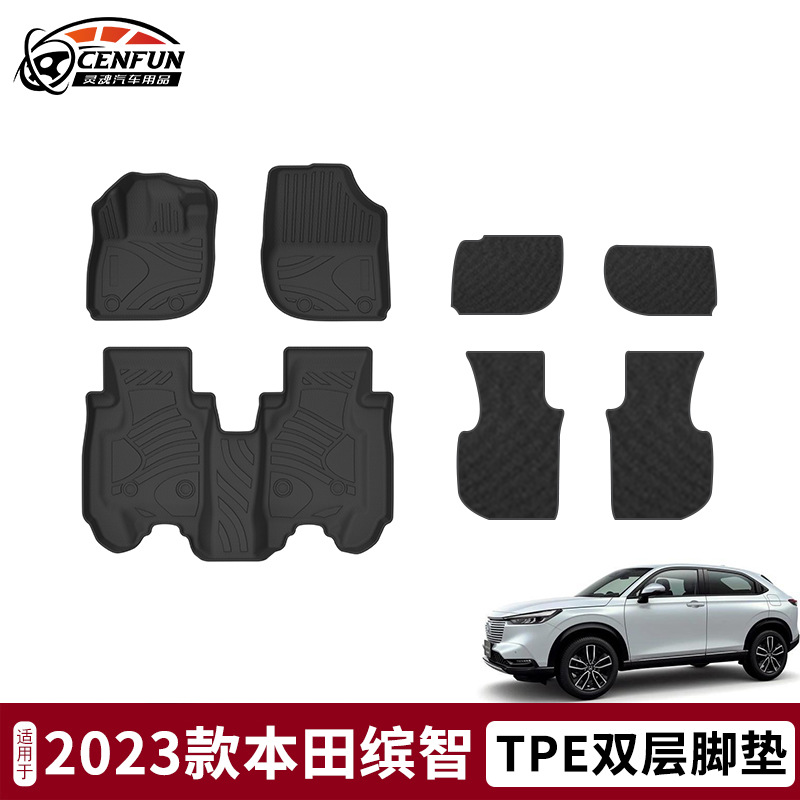 Cocok untuk 2023 Honda Zhizhi alas kaki kemudi kiri dan kanan bahan ramah lingkungan TPE perlengkapan mobil karpet lapisan ganda tahan air