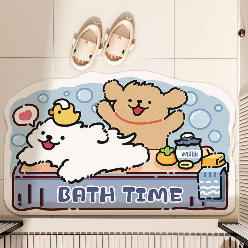 Keset Tanah Lumpur Diatom Keset Kaki Kering Cepat Penyerap Air Kamar Mandi Anak Anjing Garis Kartun Keset Kaki Anti Licin Tahan Aus Pintu Masuk Kamar Mandi