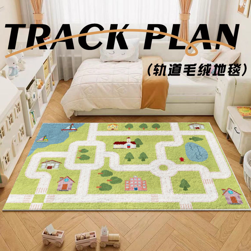 Karpet kasmir lalu lintas kota kartun anak-anak karpet jalan anak-anak tempat parkir kamar tidur selimut samping tempat tidur
