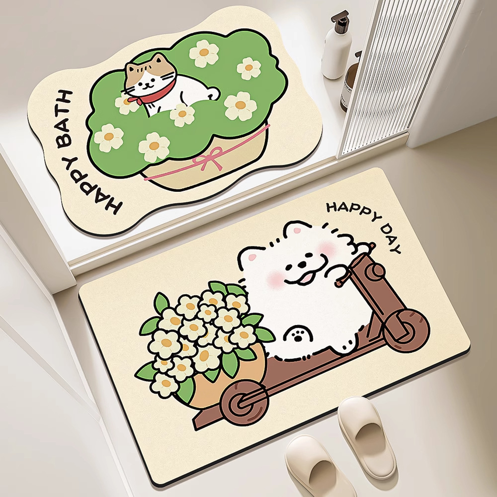Keset Lantai Kamar Mandi Kartun Keset Kaki Anti Licin Lumpur Diatom Keset Lantai Pintu Kamar Mandi Keset Kaki Penyerap Air Kamar Mandi Karpet Cepat Kering
