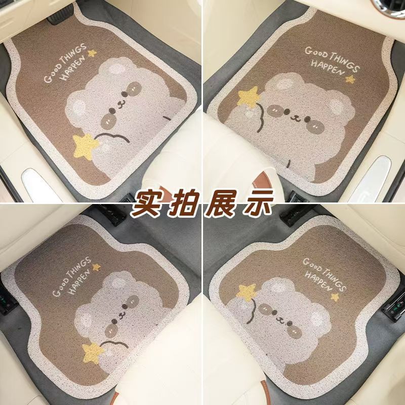热销卡通小熊通用汽车丝圈脚垫可裁剪垫易打理防滑车垫车载脚踏垫