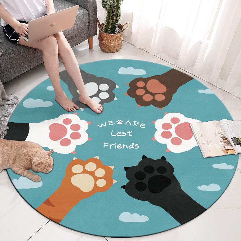 Karpet Bulat Lintas Batas Karpet Kaset Beludru Kristal Kartun Ruang Tamu Alas Lantai Kamar Tidur Anak-anak Alas Anti Selip Keranjang Gantung Grosir