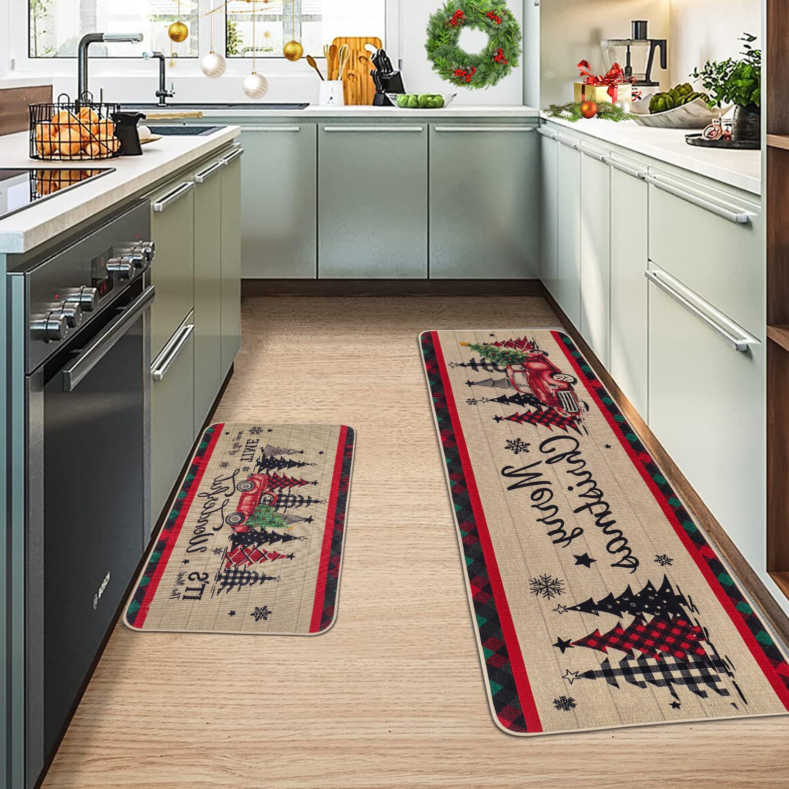 Set Alas Lantai Dekorasi Liburan Natal Alas Kaki Gnome Truk Natal Serap Minyak Tahan Kotor untuk Dapur