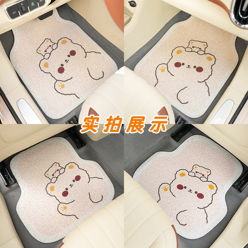 Keset kaki mobil Beruang garis tebal lucu, keset kaki mobil antikotor mudah dibersihkan cincin sutra motif kartun untuk wanita