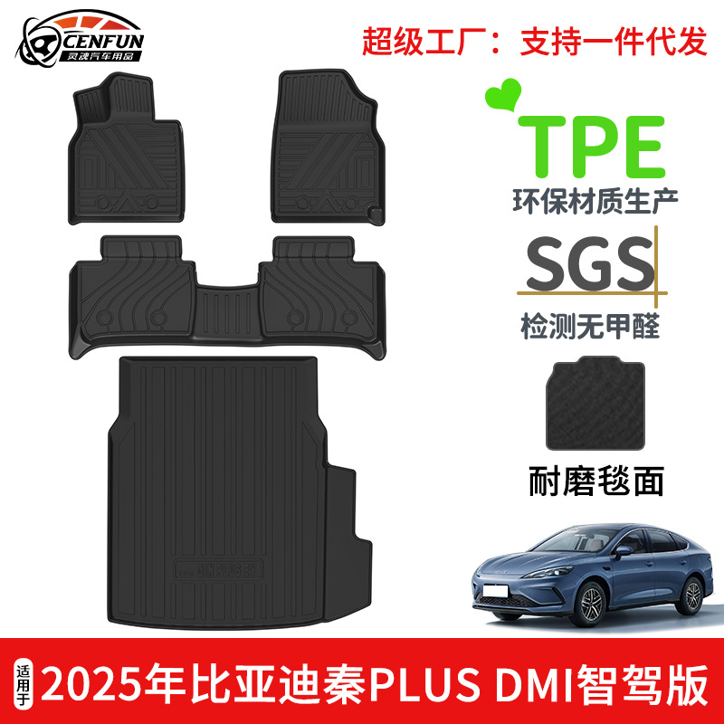 Cocok untuk 25 Tahun BYD Qin PLUS DMI Alas Kaki Mobil TPE Ramah Lingkungan Tanpa Bau Alas Kotak Belakang Serat Karbon