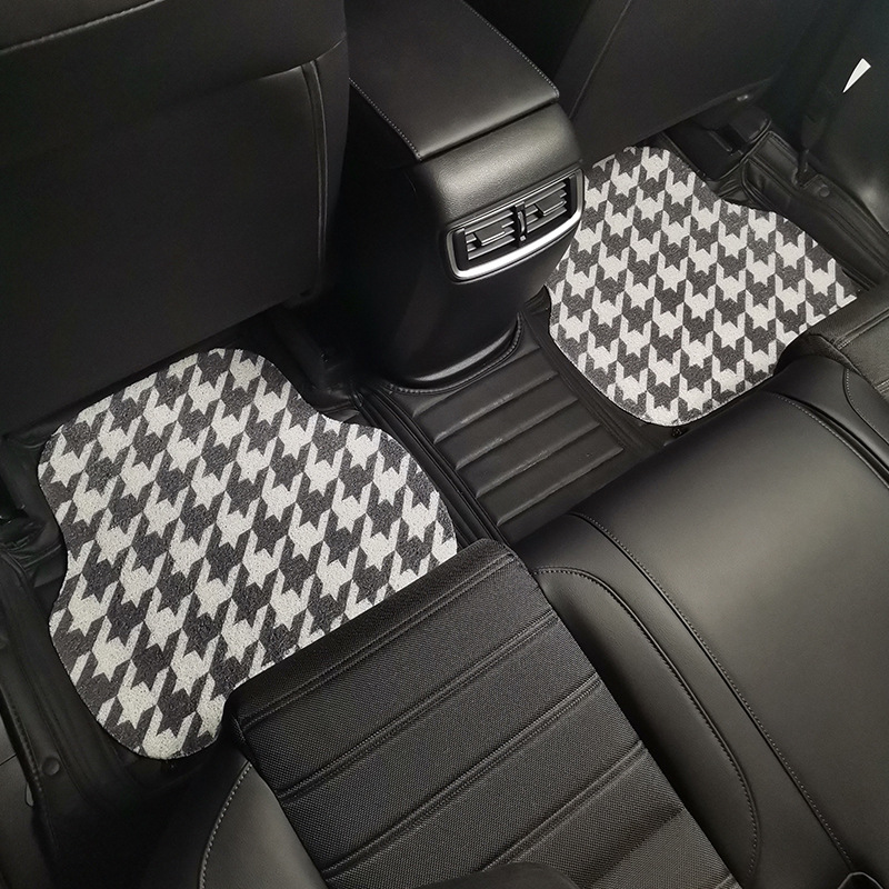 Hitam dan putih kotak-kotak mobil menggores tikar lantai mobil sederhana dalam ruangan ribu pulau grid dua warna non-slip kawat loop tikar lantai mobil