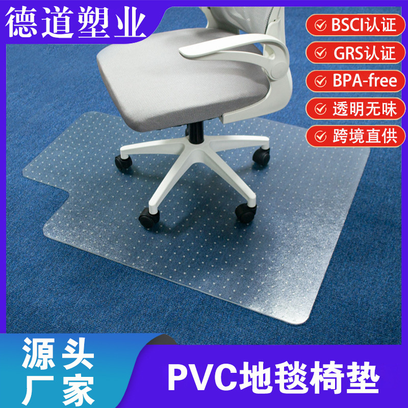 Alas kursi kantor PVC transparan buram dari produsen sumbernya, pelindung karpet kursi roda putar, PVC cembung dengan paku