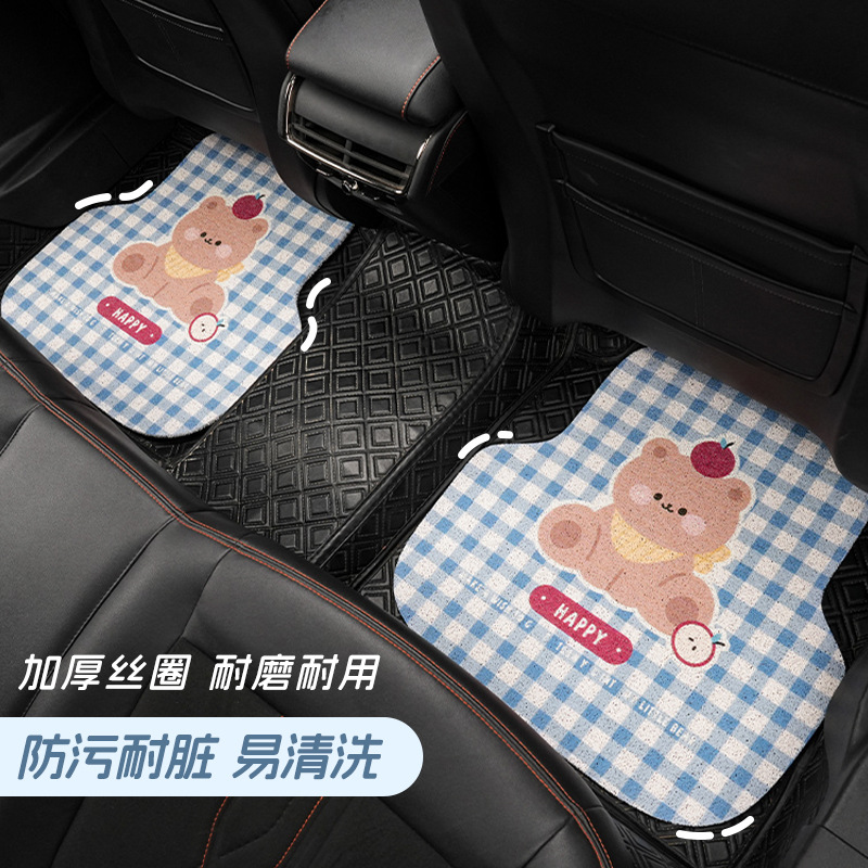 Keset Kaki Mobil Kartun Keset Karpet Anti-slip Mobil Anti-Aus Mobil Lucu Beruang Kecil Produk Dekorasi Mobil Universal Kreatif
