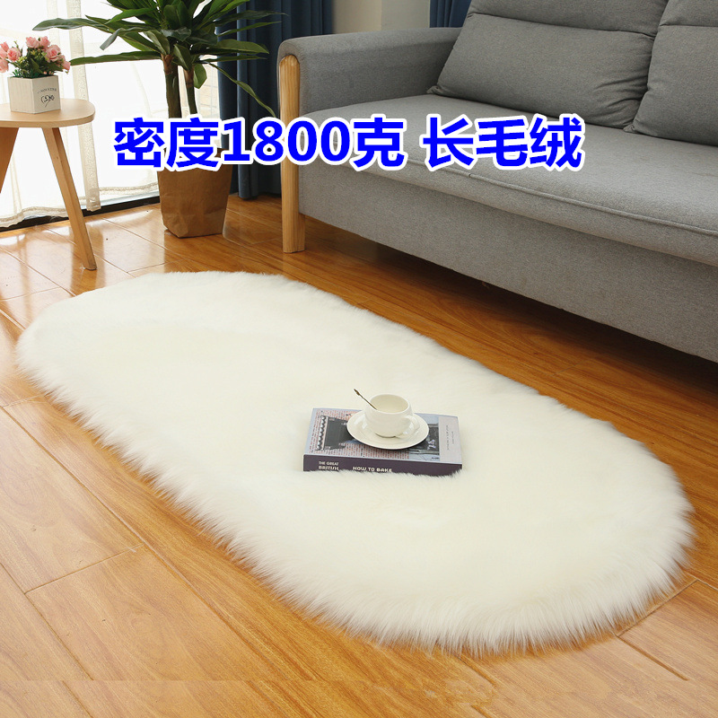 Karpet empuk gaya mewah ringan, karpet kamar tidur Oval ins selimut samping tempat tidur nordik ruang tamu meja kopi wol putih keset lantai