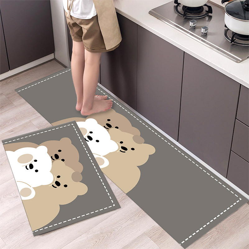 Tikar lantai panjang beruang kartun, karpet dapur, pintu kamar mandi, keset tahan noda, keset kaki pengiriman lintas batas