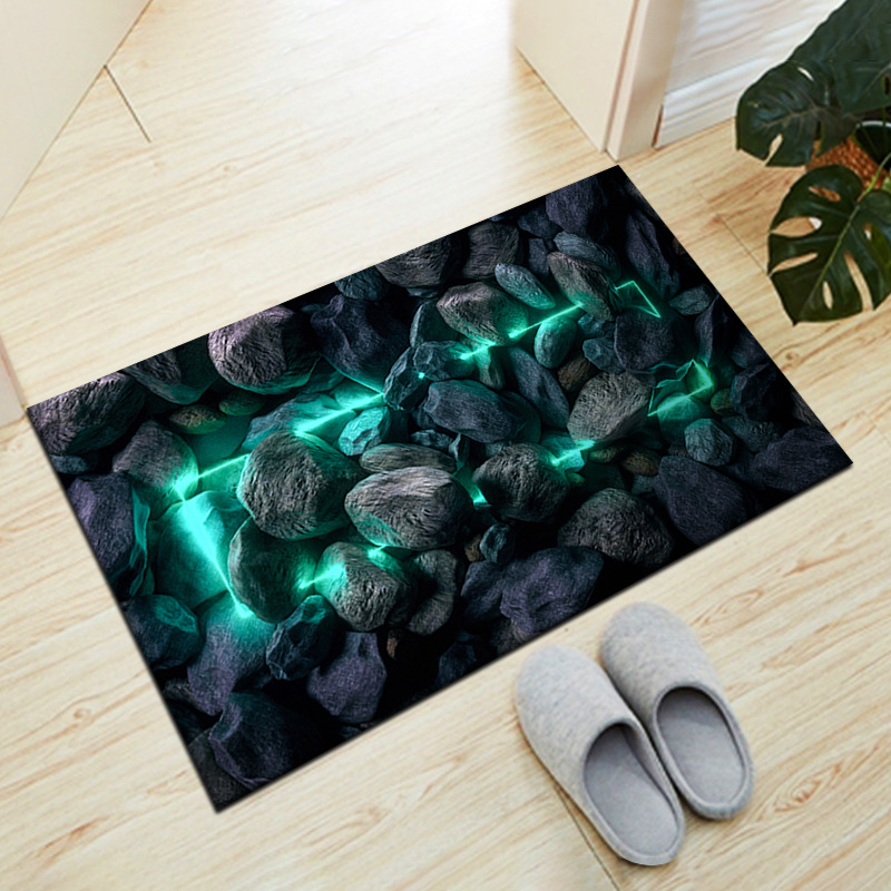 Keset lantai gambar 3d, karpet beludru kristal geometris pola batu abstrak, keset pintu rumah, keset lantai kamar mandi