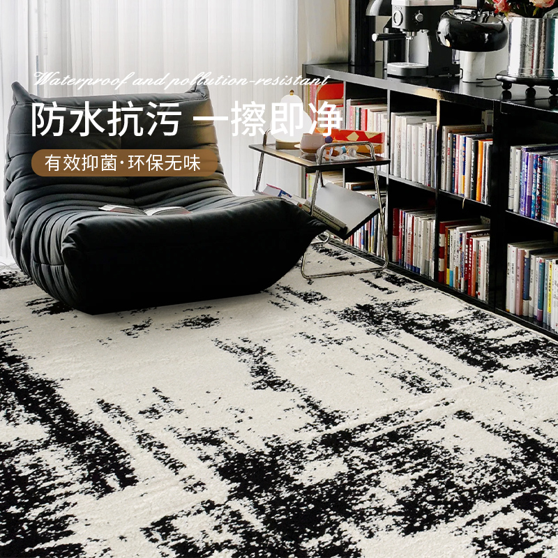[Tahan Air dan Anti Kotoran] Karpet Abstrak Modern Hitam Premium Minimalis Alas Meja Kopi Ruang Tamu Sofa Selimut Samping Tempat Tidur Kamar Tidur