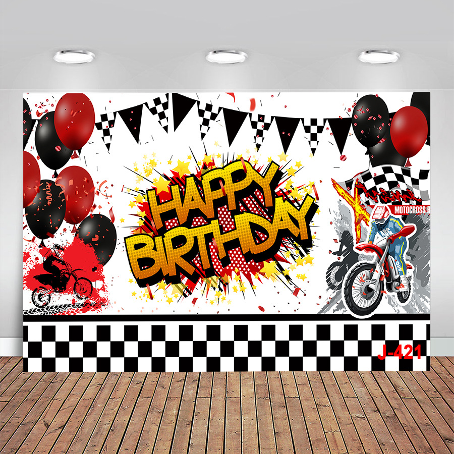 Balon sepeda motor Amazon perdagangan luar negeri lintas batas perayaan ulang tahun dekorasi pesta foto latar belakang kain tata letak pemandangan