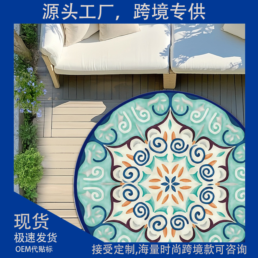 Karpet Bulat Outdoor Outdoor Outdoor Berpola Bohemian Cocok untuk Outdoor Santai RV Karpet serambi