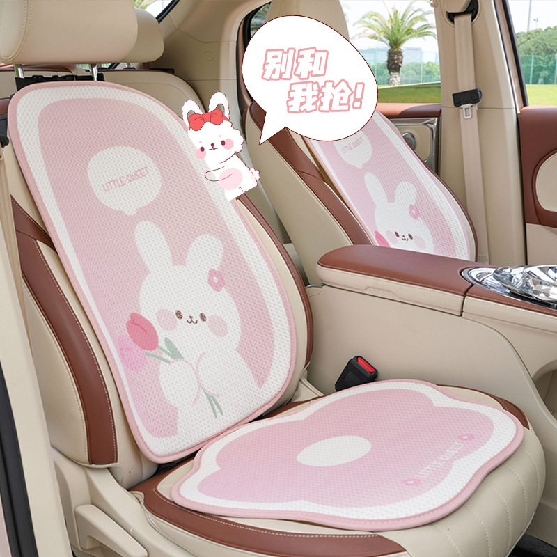 Alas Duduk Mobil Kelinci Tulip Empat Musim Alas Kursi Mobil Bersirkulasi Dingin Musim Panas Universal Alas Duduk Mobil Sutra Es Kartun